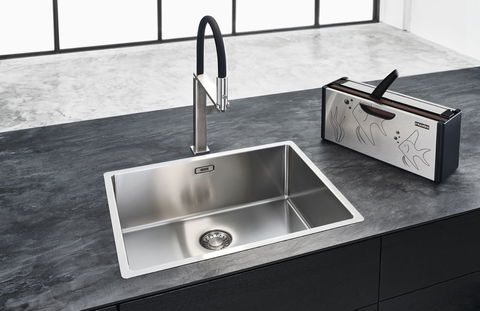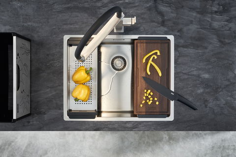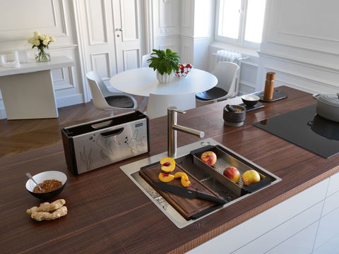 Andy Chef da "Franke" é a solução perfeita para uma cozinha elegante e bem organizada. Com design inteligente, garante que seus acessórios permaneçam seguros e higiênicos, mesmo quando não estão em uso.