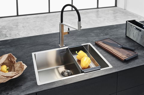 - Compatibilidade perfeita: Tábua de corte e cesto escorredor se encaixam nas cubas Franke BOX e ONYX (410mm).
