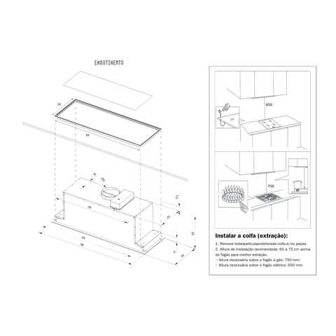 - Instalação Embutida: Integra-se perfeitamente ao móvel, mantendo o visual limpo e harmônico da sua cozinha.