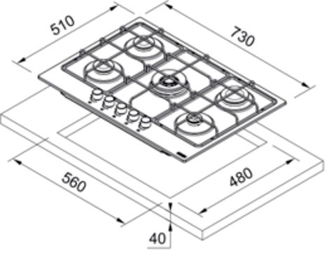 Potência (W) Queimadores | 1x dupla chama 3.300W |1x rápido 3.000W | 2x semirrápido 1.750W | 1x auxiliar 1.000W |