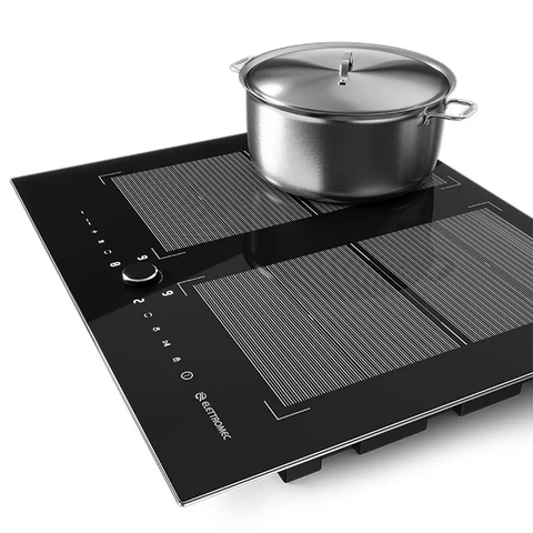 Cooktop Indução 60cm Elettromec Vidro Preto - 4 Zonas de Cocção, Semi Flex Zone, Controle Touch para Cozinhas Funcionais e Modernas