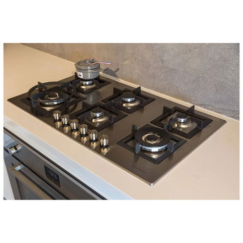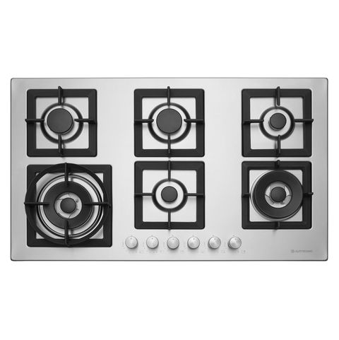 Cooktop a Gás para Cozinhas Elettromec Quadratto 90cm Bivolt 6 Queimadores Inox - Acendimento Superautomático, Trempe Ferro Fundido e Segurança Sabaf
