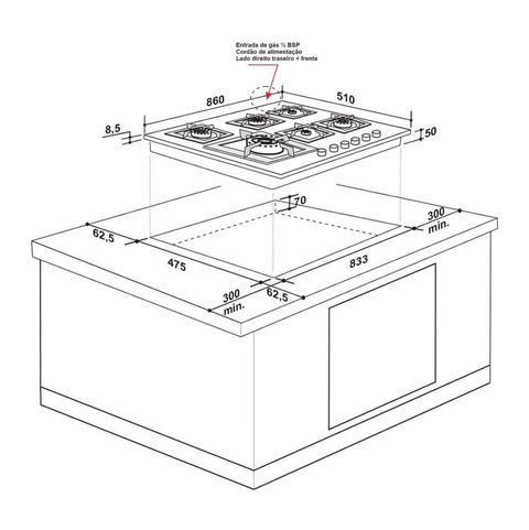 Dimensões do Produto | 860 x 60 x 510 mm |