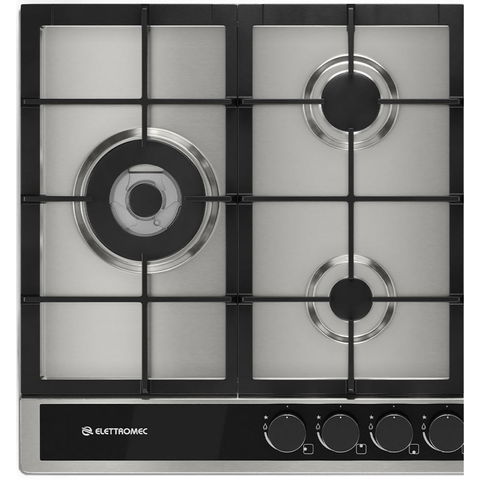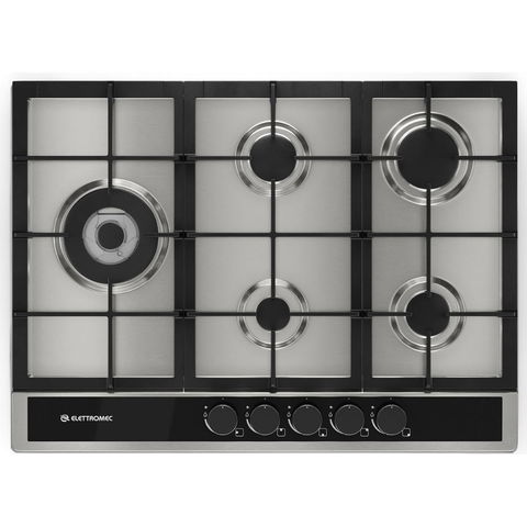 Cooktop a Gás Elettromec Sole 70cm Inox e Preto Bivolt - 5 Queimadores com Dual Flame 4,0 kW, Acendimento Super Automático, Trempes de Ferro Fundido e Válvulas de Segurança