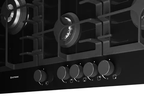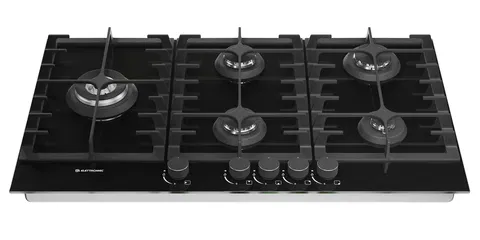 Cooktop a Gás 90cm Vidro Temperado Preto Elettromec Vetro Bivolt - 5 Queimadores Sabaf, Acendimento Superautomático, Válvula de Segurança, Trempes de Ferro Fundido