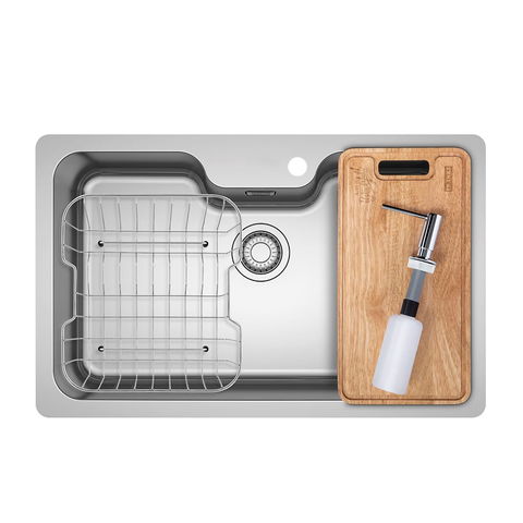 Cuba de Embutir para Cozinha Franke Bell Fosca em Aço Inox 74,4 x 44,5 cm - Com Acessórios, Ladrão Oculto, Fast Fixing e Tábua de Madeira