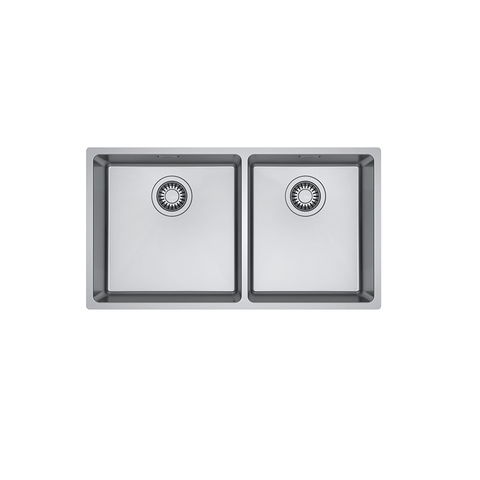 Cuba de Embutir e Sobrepor em Aço Inox Franke Linea Dupla 74x40cm - Cantos Retos, Válvula 4,5" Inclusa, Compatível com Triturador