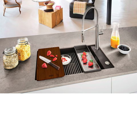 Cuba de Embutir para Cozinha Fragranite Onyx Franke 62x42cm com Acessórios - Resistente a Impactos, Altas Temperaturas e Arranhões