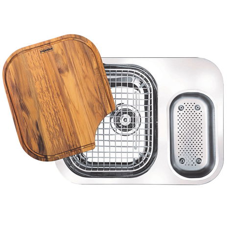 Cuba de Embutir Inox para Cozinha Franke Quinline CD300 com Acessórios - Moderna, Dupla, Profunda, com Cesto e Tábua Inclusos, 61x45 cm