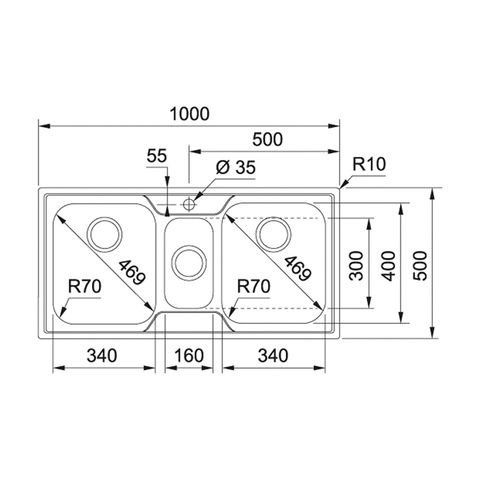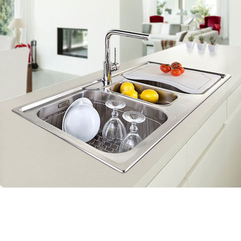 Cuba Tripla de Sobrepor para Cozinha em Aço Inox 304 Franke Smart 100x50cm com Acessórios - Design Funcional e Vedação Perfeita