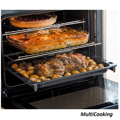 Com o Sistema de Ar Forçado MultiCooking, prepare pratos doces e salgados simultaneamente, economizando tempo e energia. O Vidro Triplo com sistema Press2Clean facilita a limpeza, removendo o vidro sem ferramentas.