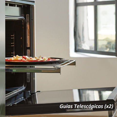 Diferencial Forno | Controle Eletrônico, Display LCD Branco, Limpeza Pirolítica, 11 Funções (2 CookAssistant), Dobradiças Smooth2Close, Guias Telescópicas 2 Níveis, Vidro Triplo Press2Clean , Cavidade Interna Cinza e Plana |