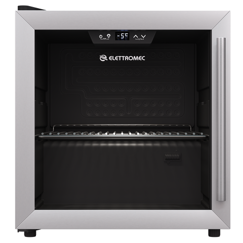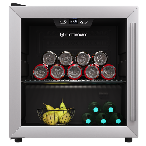 Frigobar Compacto com Porta de Vidro Elettromec 40L 220V - Inox, Display Digital e Iluminação LED, Memória de Energia e Redução de Umidade