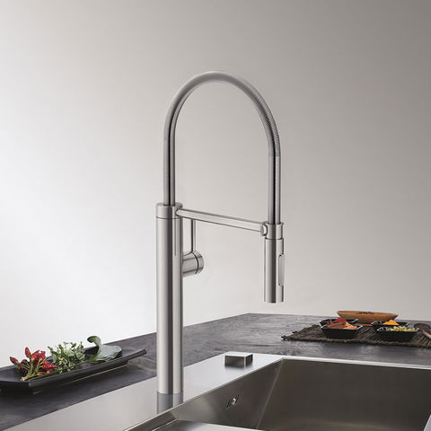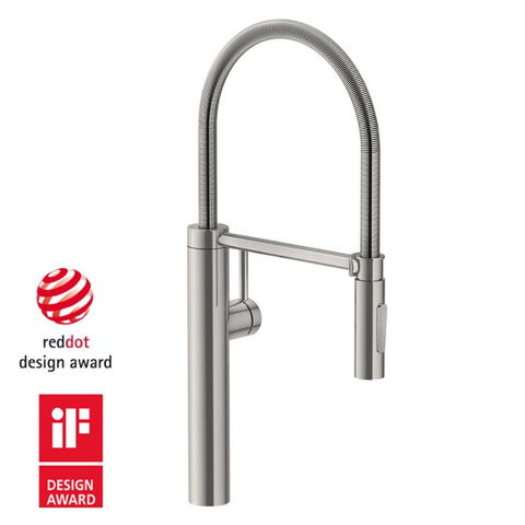 Misturador Monocomando de Mesa para Cozinha Franke Pescara XL em Aço Inox Fosco Bica Giratória Flexível - Design Europeu, Dois Tipos de Jato e Encaixe Magnético