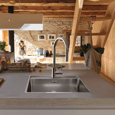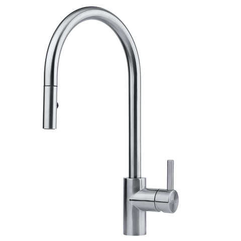 Misturador Monocomando Mesa Bica Alta Extensível Franke Eos Neo Fosco Aço Inox 304 - Design Elegante Controle Precisão Água Quente Fria
