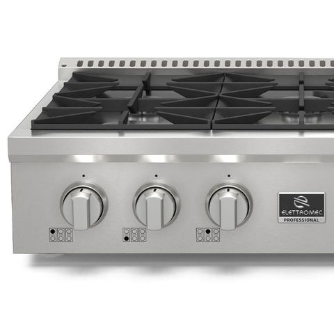 Rangetop Professional Elettromec 36 Polegadas 127V - 6 Queimadores Alta Potência, Design Americano, Aço Inox 304, Acendimento Superautomático
