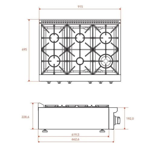 - Potência total de 20.803kW: Equipado com 6 queimadores potentes e um Dual Flame de 5.860kW de potência, perfeito para qualquer tipo de cozimento.