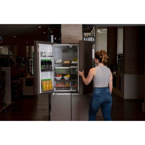 Conheça o Refrigerador Multi Door da "Cuisinart Arkton", com design sofisticado e quatro portas de abertura francesa. Este eletrodoméstico é ideal para quem busca um toque de personalização e modernidade na cozinha. Com compartimentos espaçosos e temperatura individual nas gavetas do freezer, ele oferece o máximo de versatilidade para o seu lar.