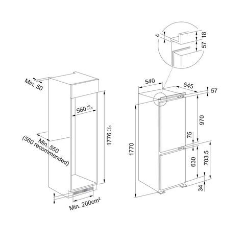 Descubra o incrível Refrigerador/Geladeira de embutir e revestir Franke, com impressionantes 250 litros de capacidade. Desfrute de 182 litros dedicados ao refrigerador e 68 litros para o freezer. ❄️